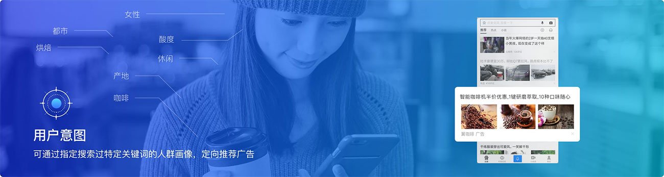 基于消費者的搜索習慣,人群畫像、定位等信息,不同的用戶畫像,系統將自動匹配不同廣告內容,千人千面,更加契合用戶的搜索需求